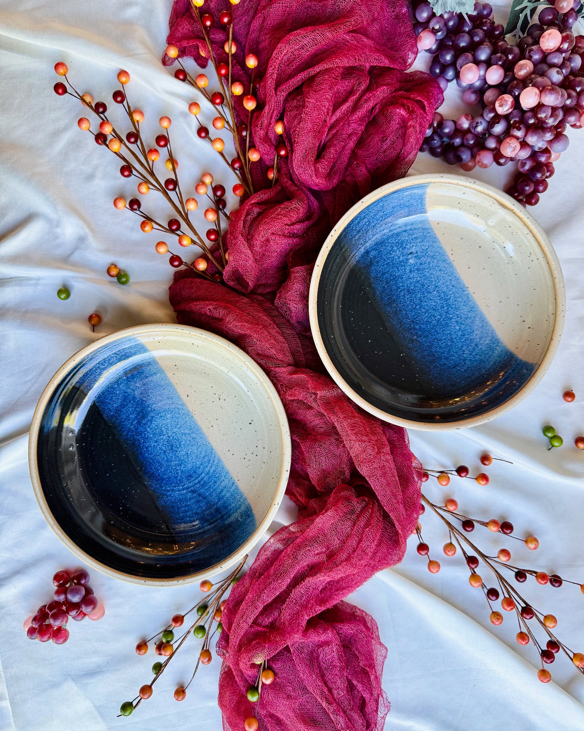 Each Blate is individually thrown and glazed, so no two are exactly alike. Their shape makes them easy to stack and beautiful to pair with Plowls for a cohesive, layered table.