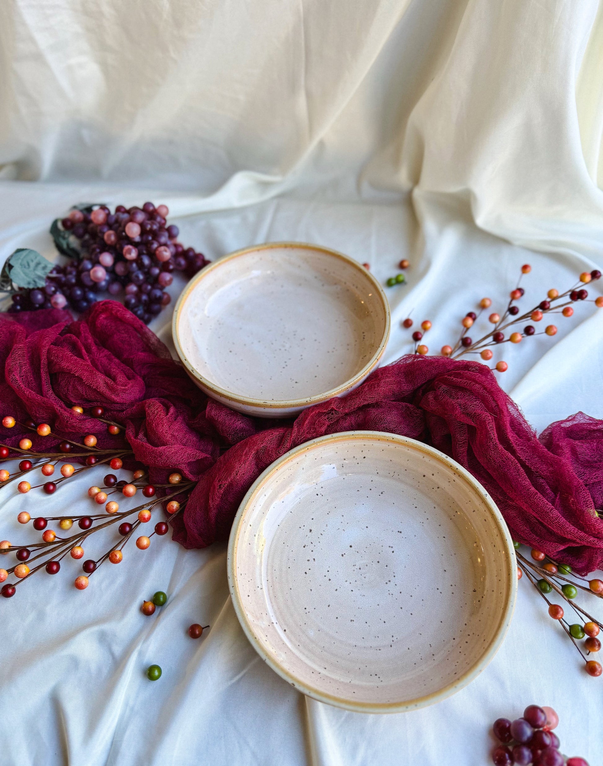 Each Blate is individually thrown and glazed, so no two are exactly alike. Their shape makes them easy to stack and beautiful to pair with Plowls for a cohesive, layered table.