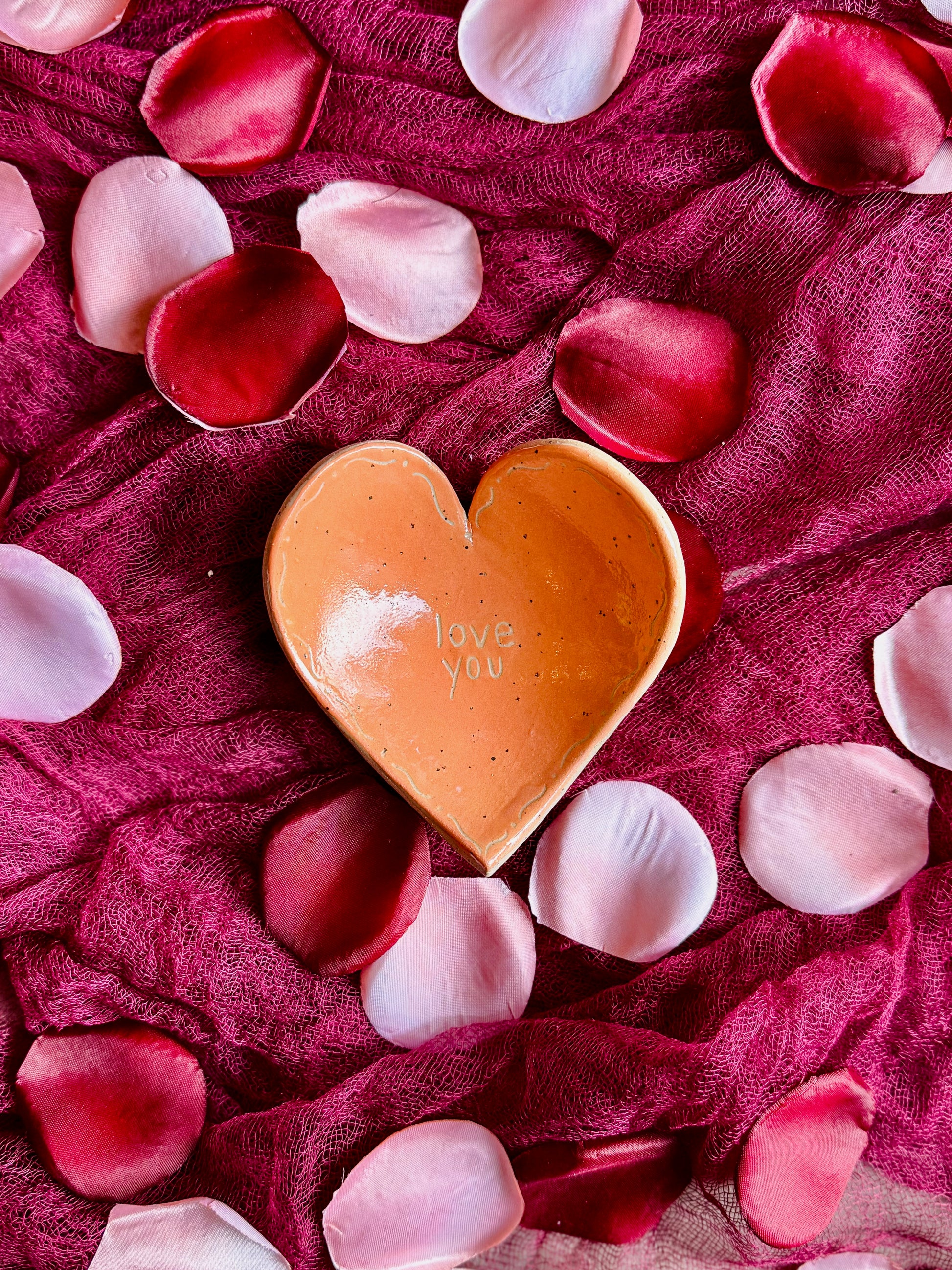 Hand-built heart shaped trinket dishes, each one painted and carved by hand <3
