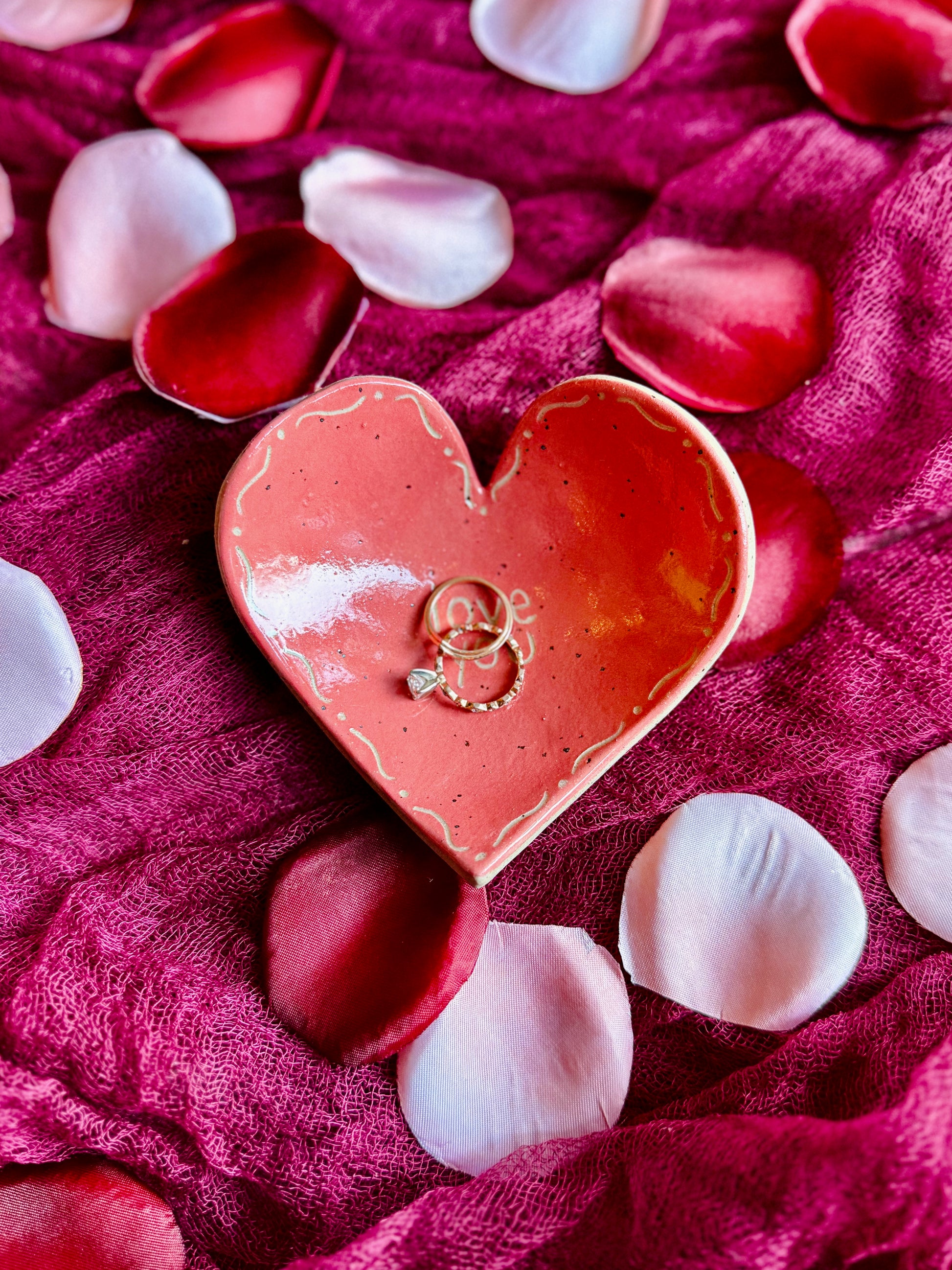 Hand-built heart shaped trinket dishes, each one painted and carved by hand <3