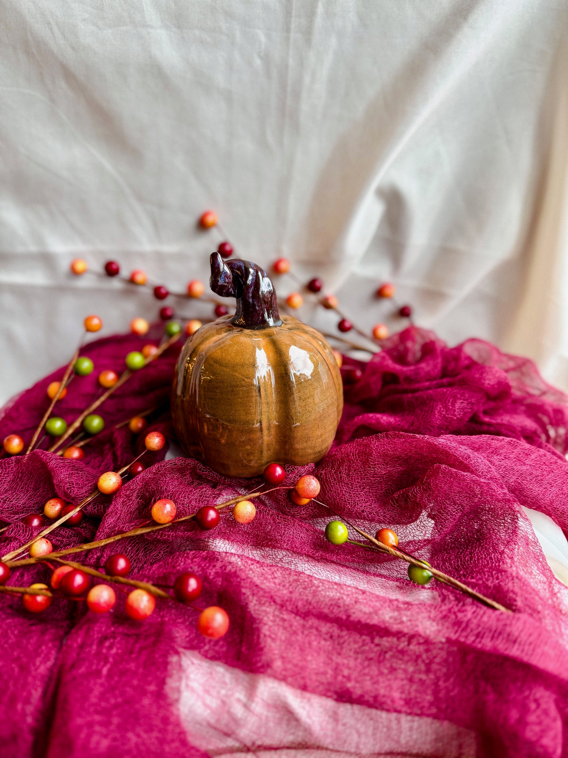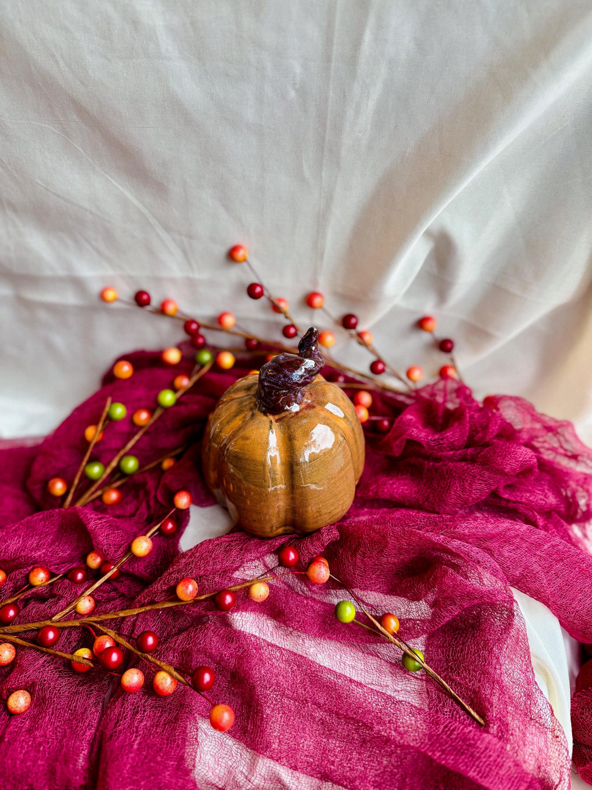 Each pumpkin is hand-thrown, sculpted, and glazed by me, no molds around here! Which means every single one has its own personality. Some are squat and round, some tall and twisty, all perfectly imperfect in the best way.