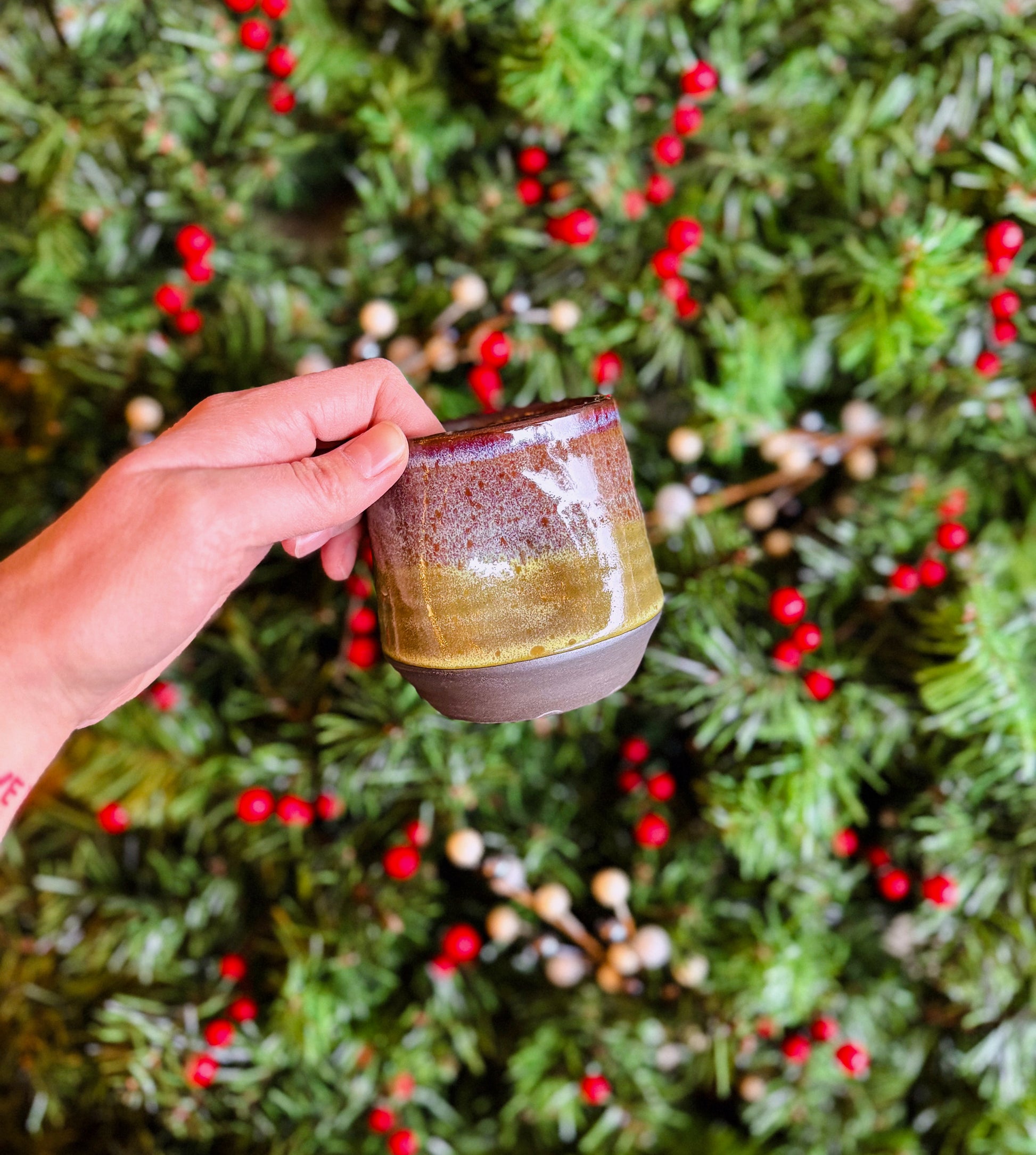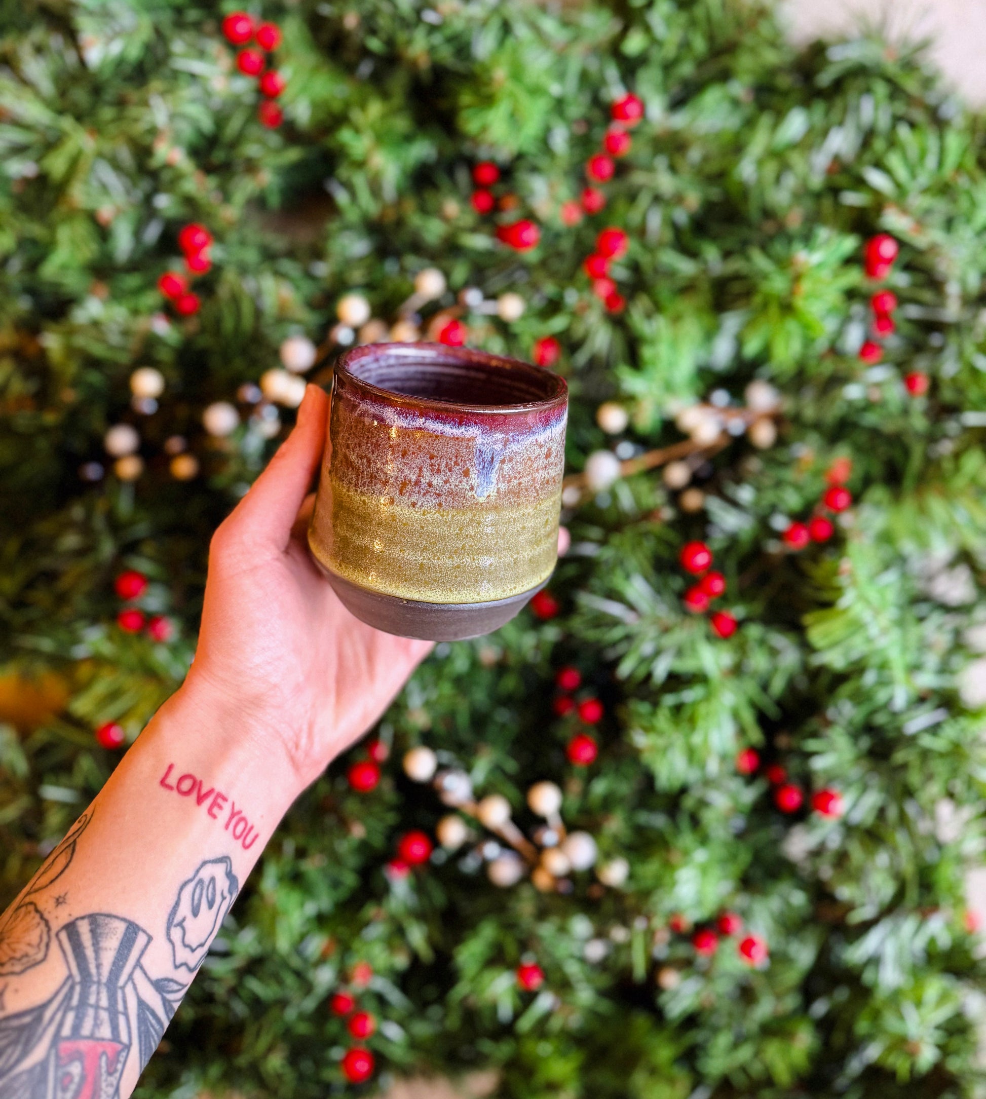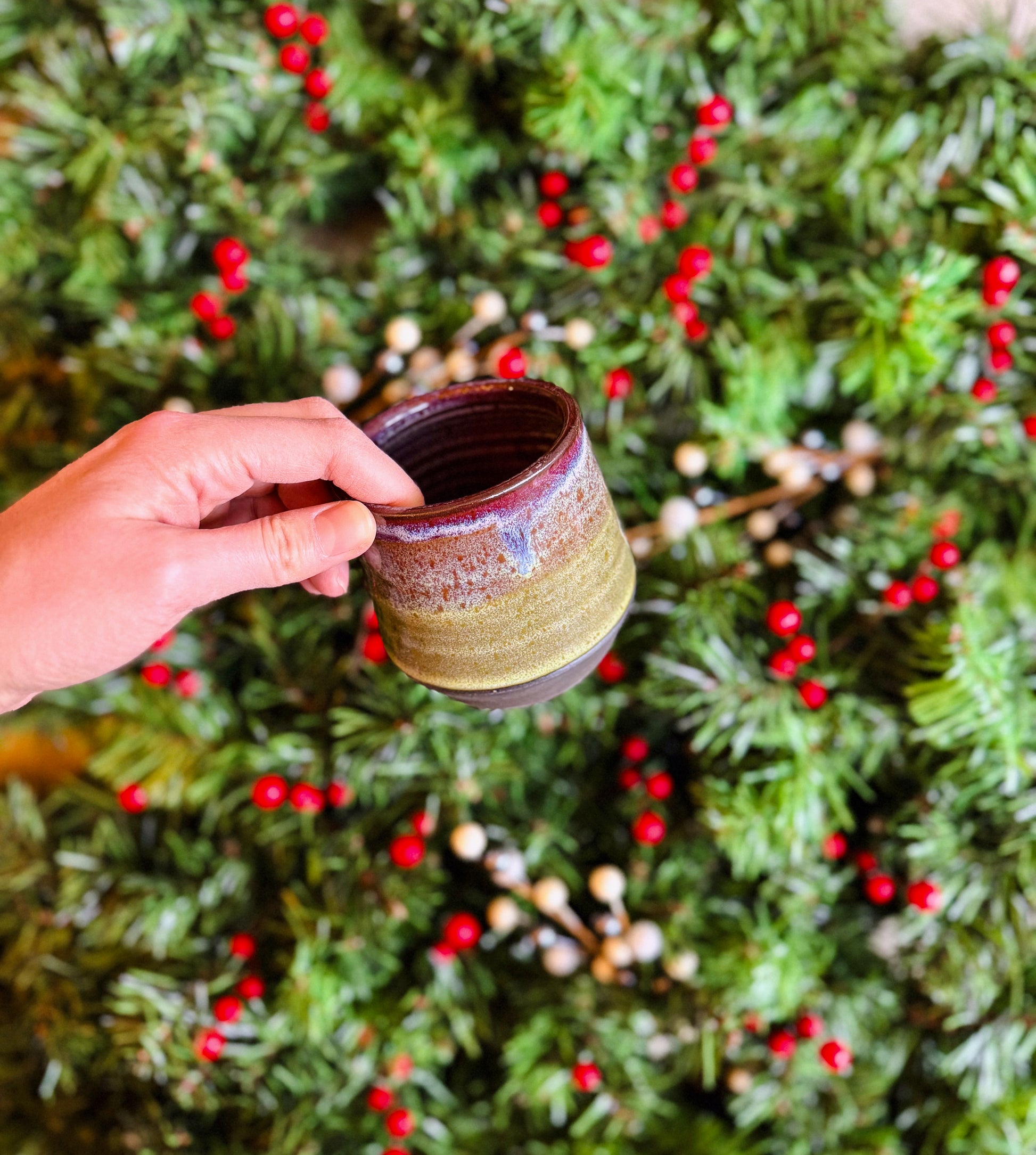 Wheel thrown in my charcoal brown clay, glazed in beet & moss